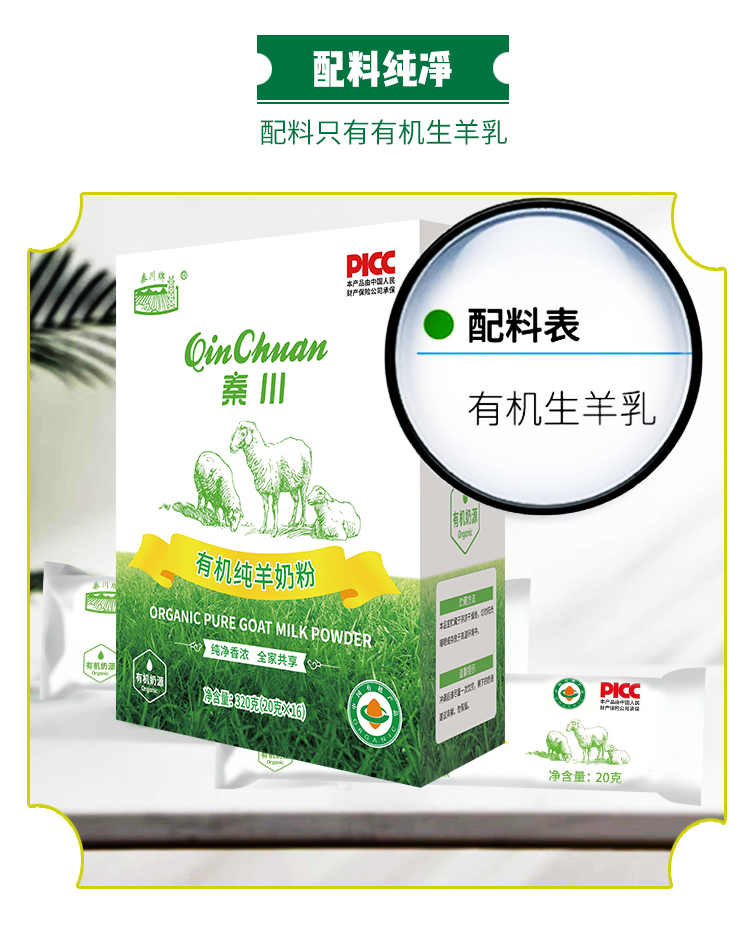 【產(chǎn)品名稱】:秦川有機(jī)純羊奶粉